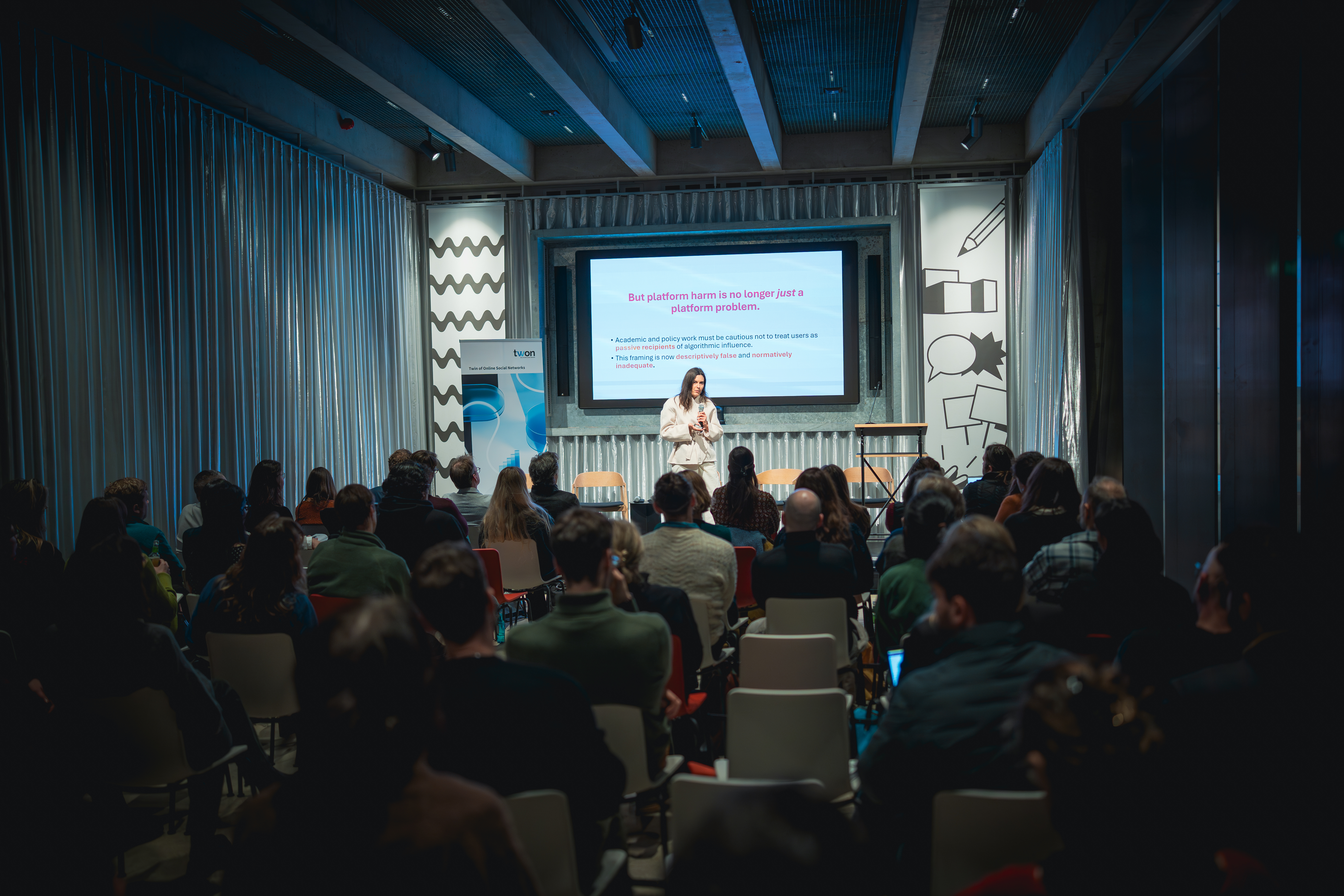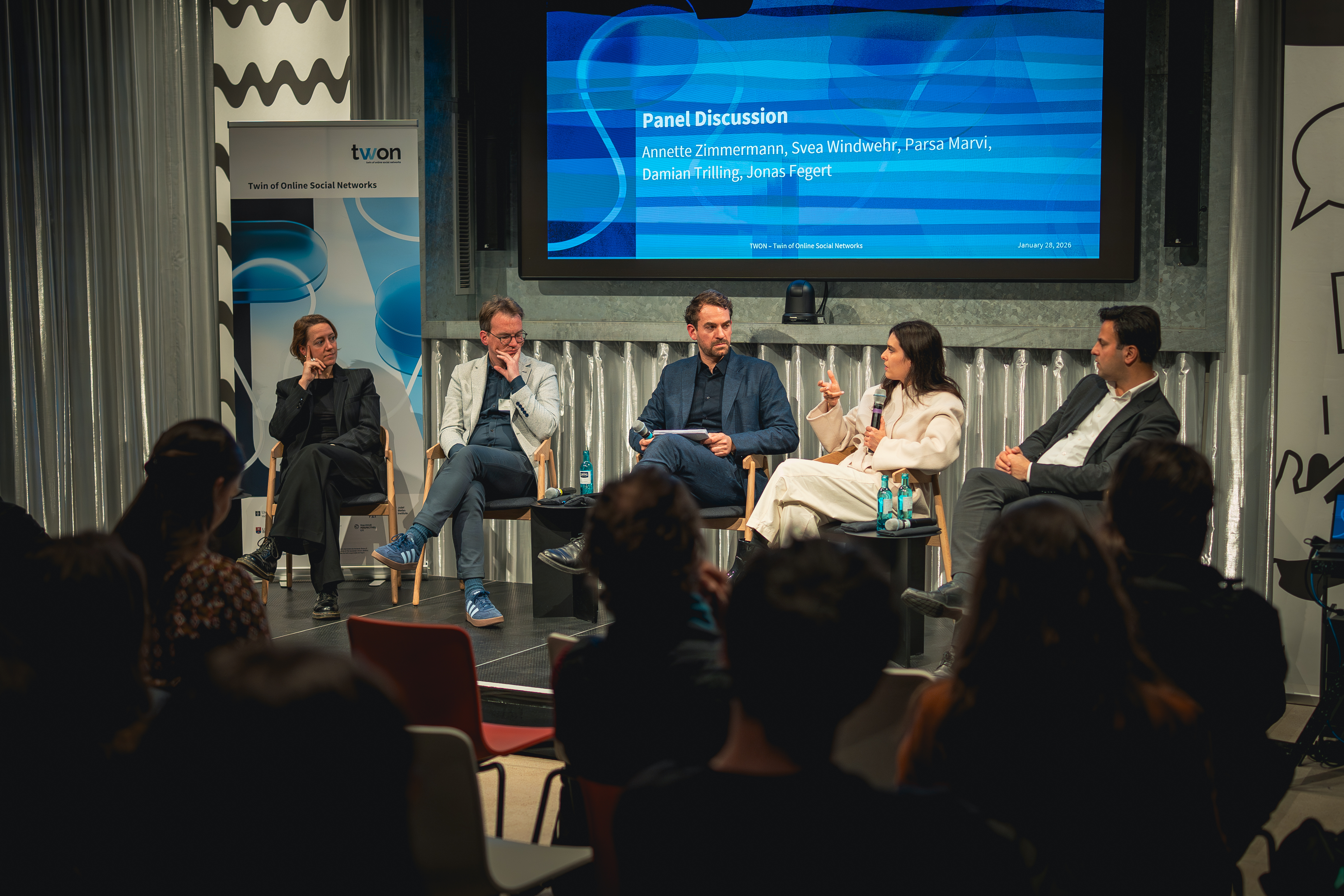 The undisputed highlight of the week followed in the evening with the public event “From Research to Regulation: Rethinking Online Social Networks” at Publix in Berlin. The event presented TWON’s research to policymakers, civil society actors, journalists, researchers, and the interested public, and fostered an open discussion on how online social networks can be designed and governed to strengthen democratic societies.